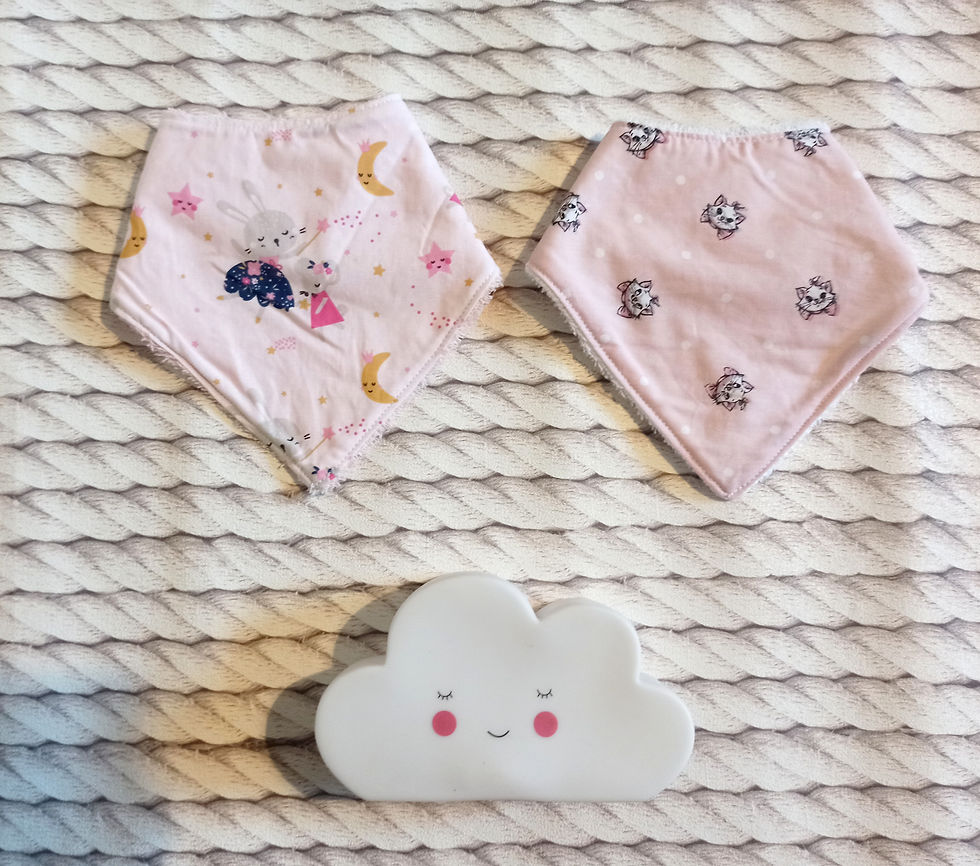 Bandana bavoir lot de 2 Pois /Animaux pastels